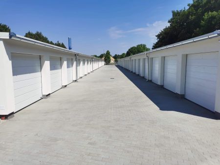 Az RM Kapu csapata egy 12 beállós sorgarázsra épített be Hörmann Renomatic szekcionált garázskapukat. A
